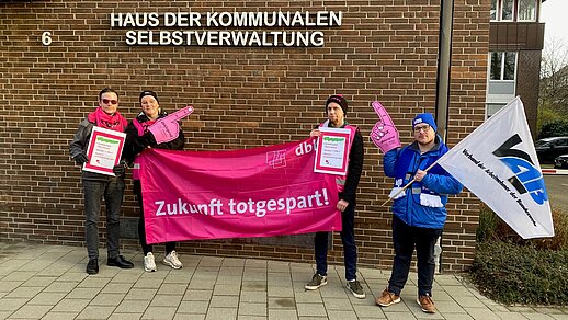 Nach dem ergebnislosen Auftakt der Tarifverhandlungen hat die dbb jugend schleswig-holstein am 21.02.2023 eine Mahnwache gut sichtbar vor dem Gebäude der Kommunalen Arbeitgeber in Kiel durchgeführt…